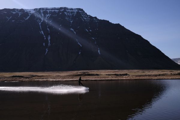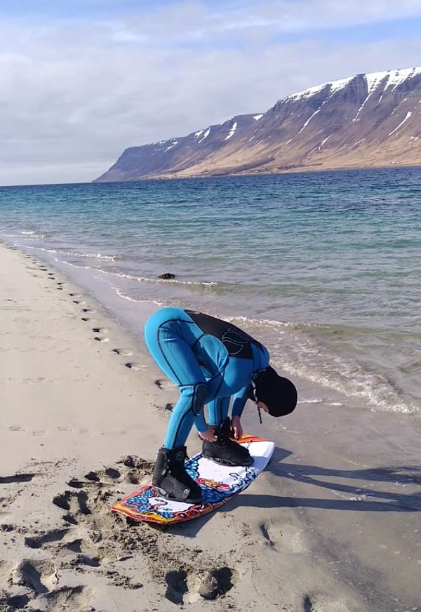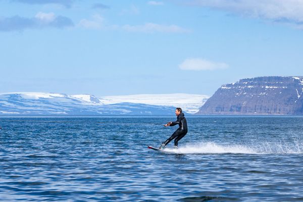 Where the fjords meet the boards. This tour takes you wakeboarding beneath stunning mountains on a white sand beach next to a little fishing village called Bolungarvik in Westfjords. Watersports adventure awaits!