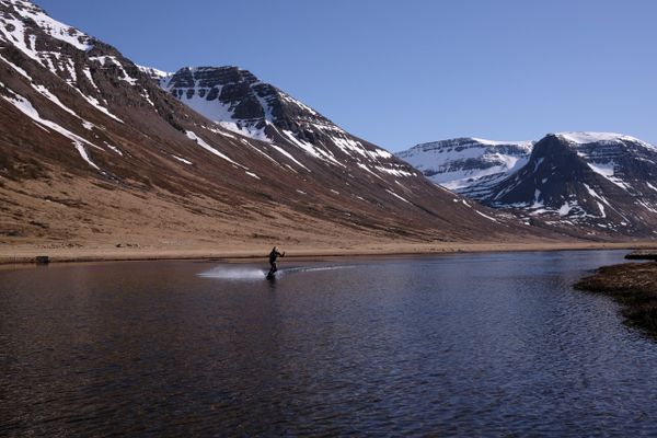 Duration of the trip: 7 hours. We meet up in Isafjordur at 09:00. The guide will provide required information and gear for the guests. We pack our gear and lunch in our backpacks. Afterwards, we will jump in our van and drive to the beginning of the hike. The hike will be around 1 hour each way. When reaching the lake your guide will set up towing gear for water sports. We will ride in teams of 2. Your guide will give a lesson on the shore and instructions how to assist each other in the water. Guide will control towing device, observe guests who are riding, give tips for improvement, and will assist in the water if needed. If group is bigger then 2 guests, it is a great opportunity for others to hike around this wonderful lake or use your snorkel and mask!